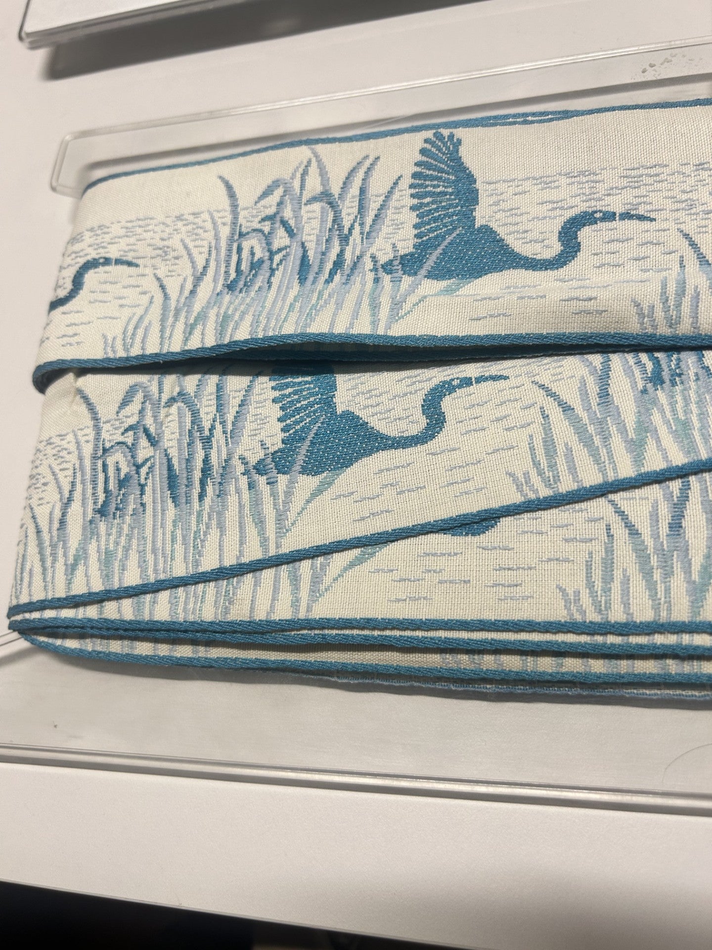 bordo decorato ricamato H. 6 CM. pellicano blu , 100% cotone made in Germany