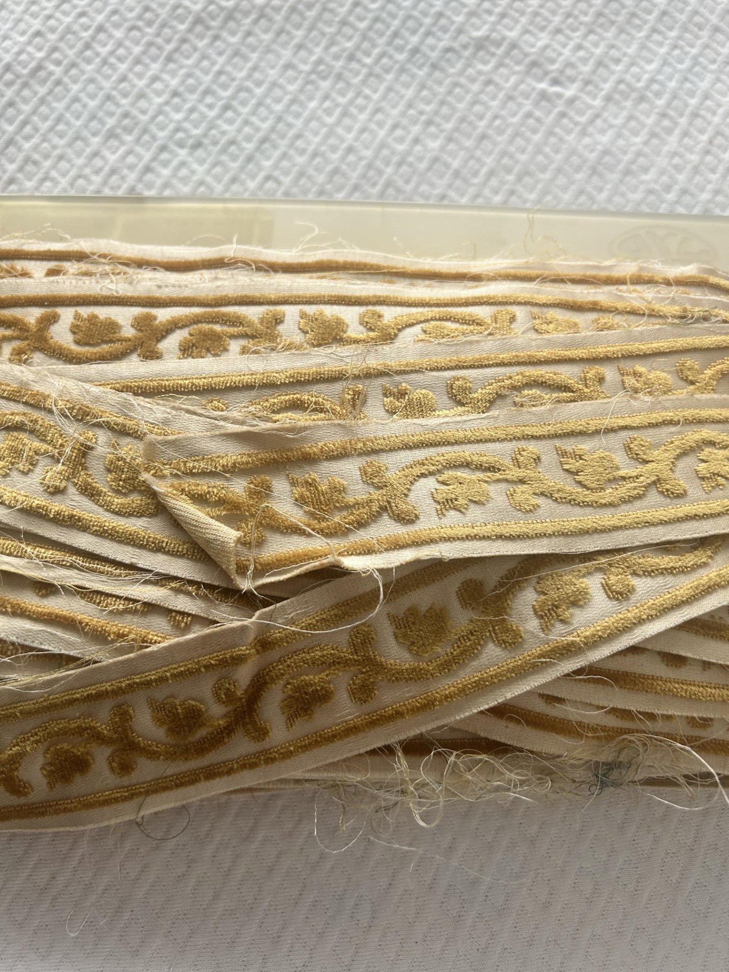 bordo decorato velluto, 36% cot. 64% seta H.4 CM. col. dorato