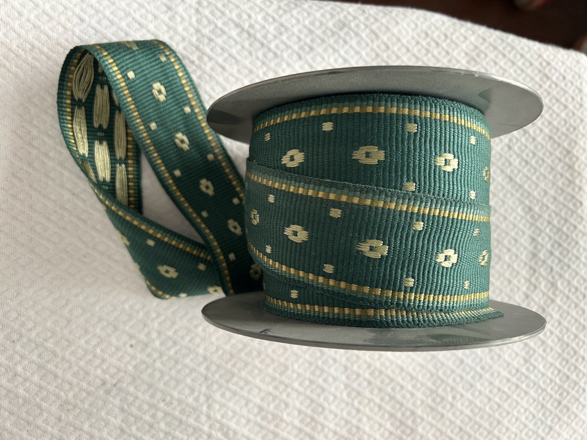 bordo ricamato in 100% cotone, fantasia, verde H. 5 CM.