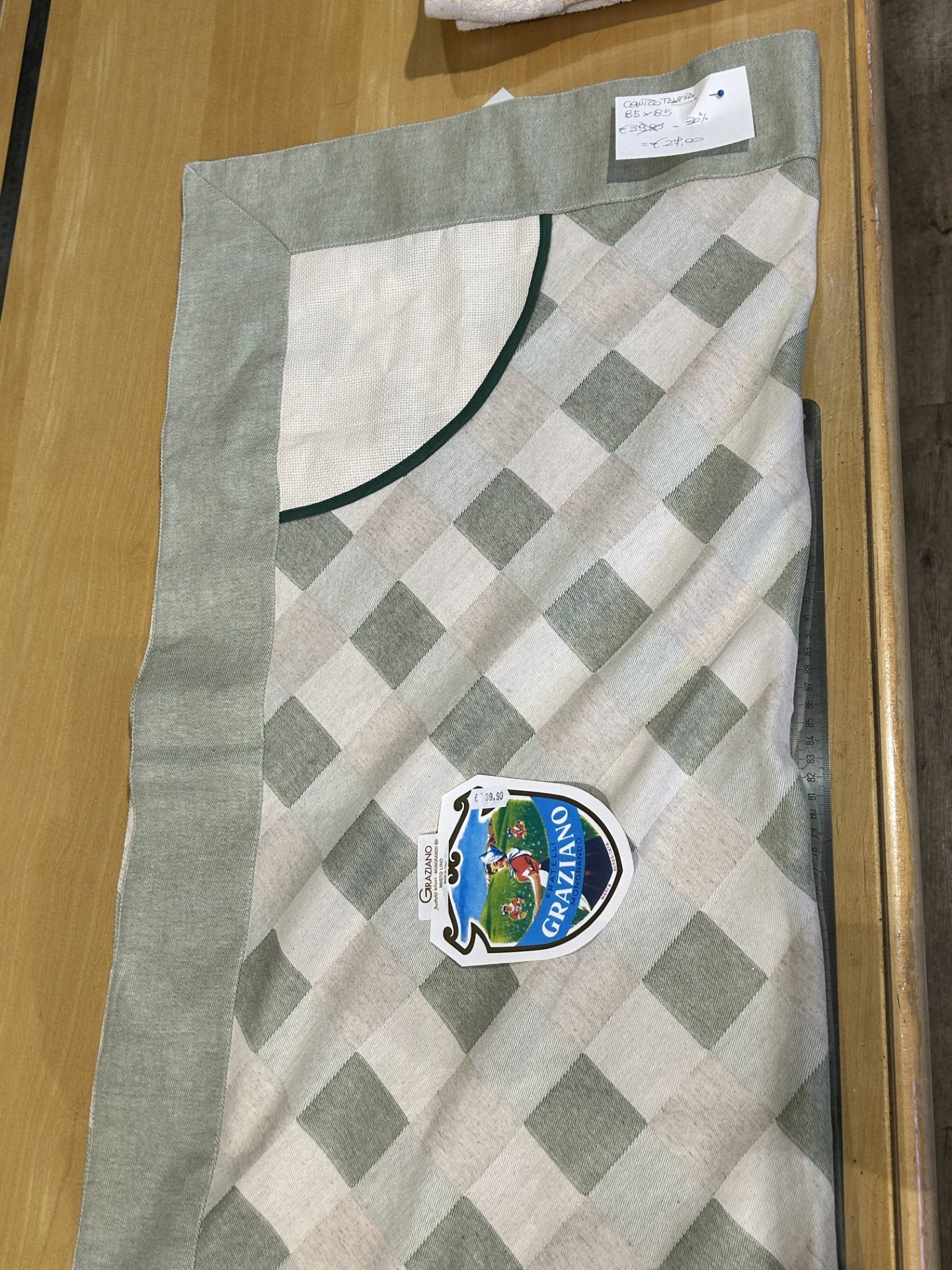 con tela aida curva sugli angoli - fantasia quadretti verde oliva su base beige - ULTIMO PEZZO - OCCASIONE - SCONTATO