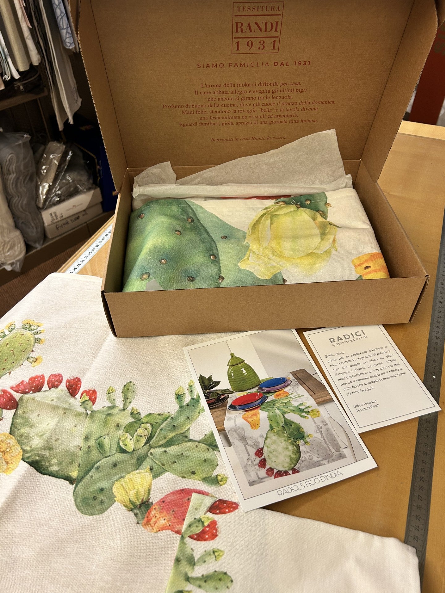 completo tovaglia 8 persone + 8 tovaglioli "FICO D'INDIA", Tessitura RANDI 1931