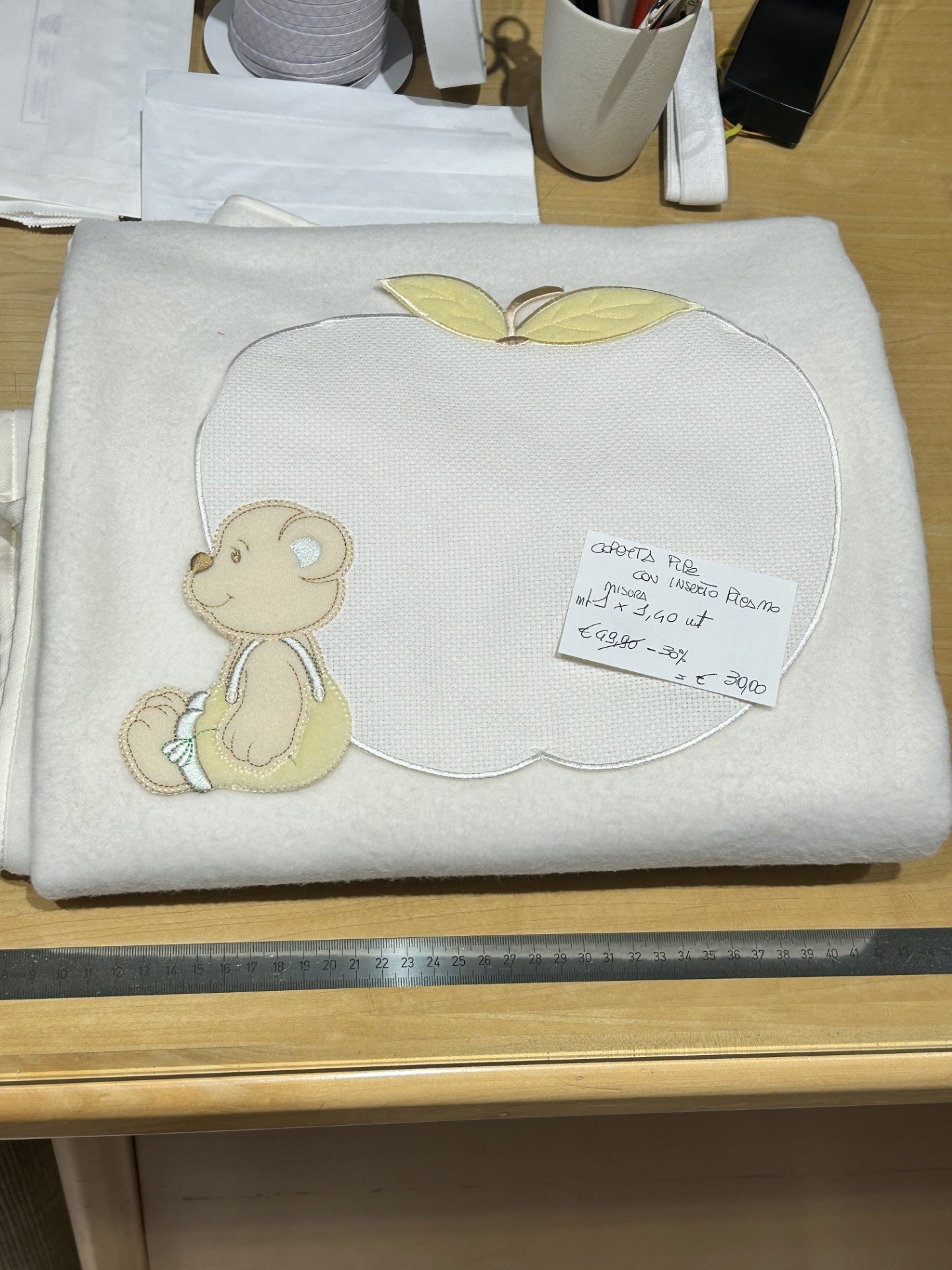 coperta PILE BIMBO/A con inserto ricamo a punto croce e applicazione orsetto
