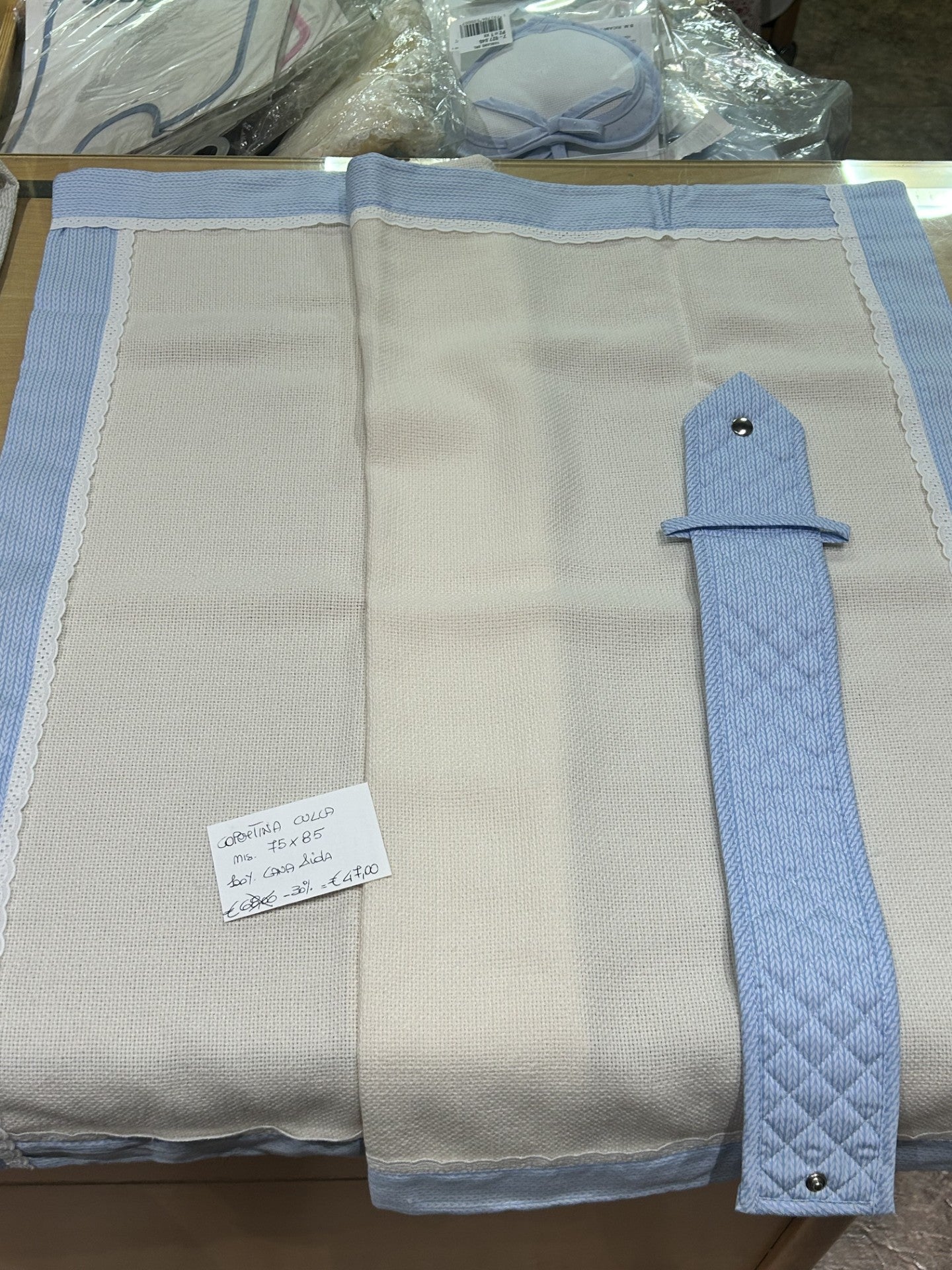 con tela aida 100% Lana - col. avorio e celeste - parti in puro cotone 100% - ULTIMO PEZZO - SUPER SCONTATO - OCCASIONE
