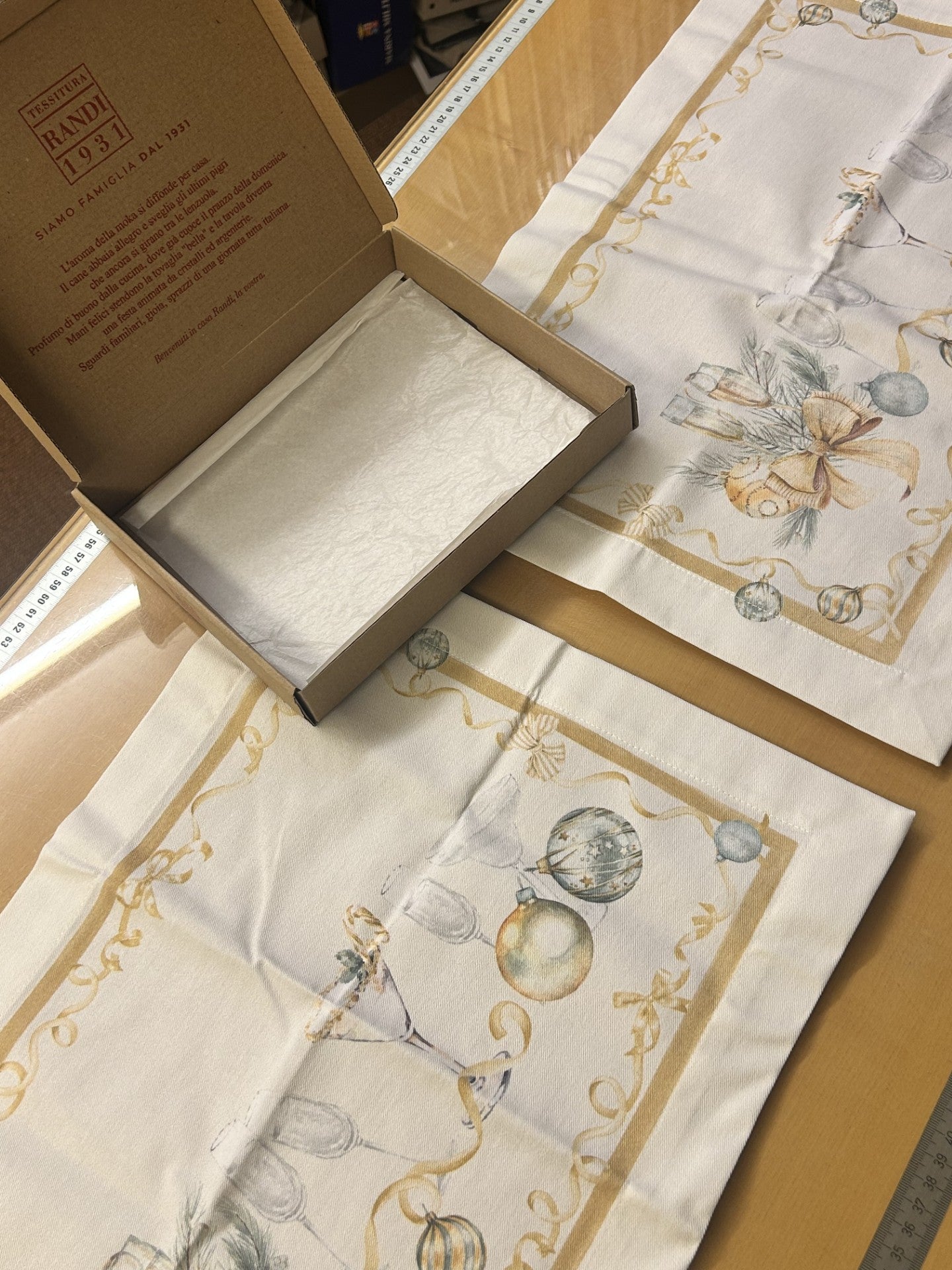 100% cotone di altissima qualità, fantasia "Calici" Natalizia, misure cad. 35 x 50 cm. , Randi Made in Italy - prezzo di entrambi € 29,90 - ultimo rimasto!