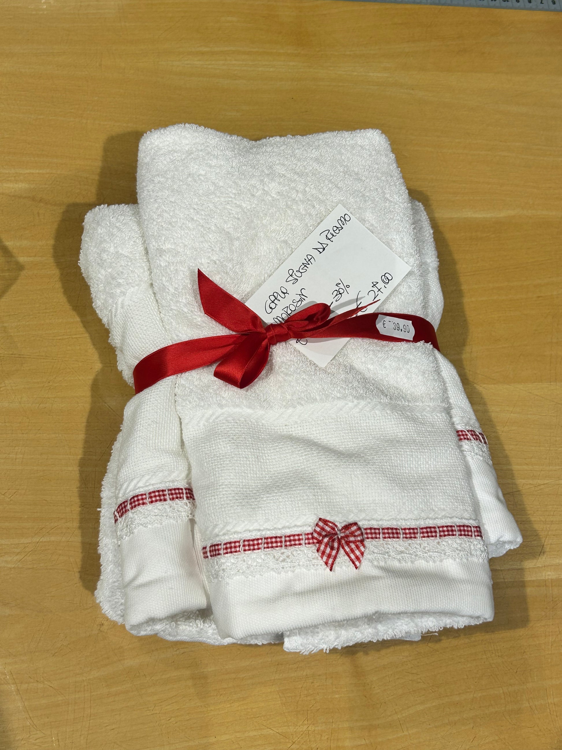 Coppia Spugna da ricamo, ospite+viso, COL. BIANCO con motivi rossi, MOROSIN