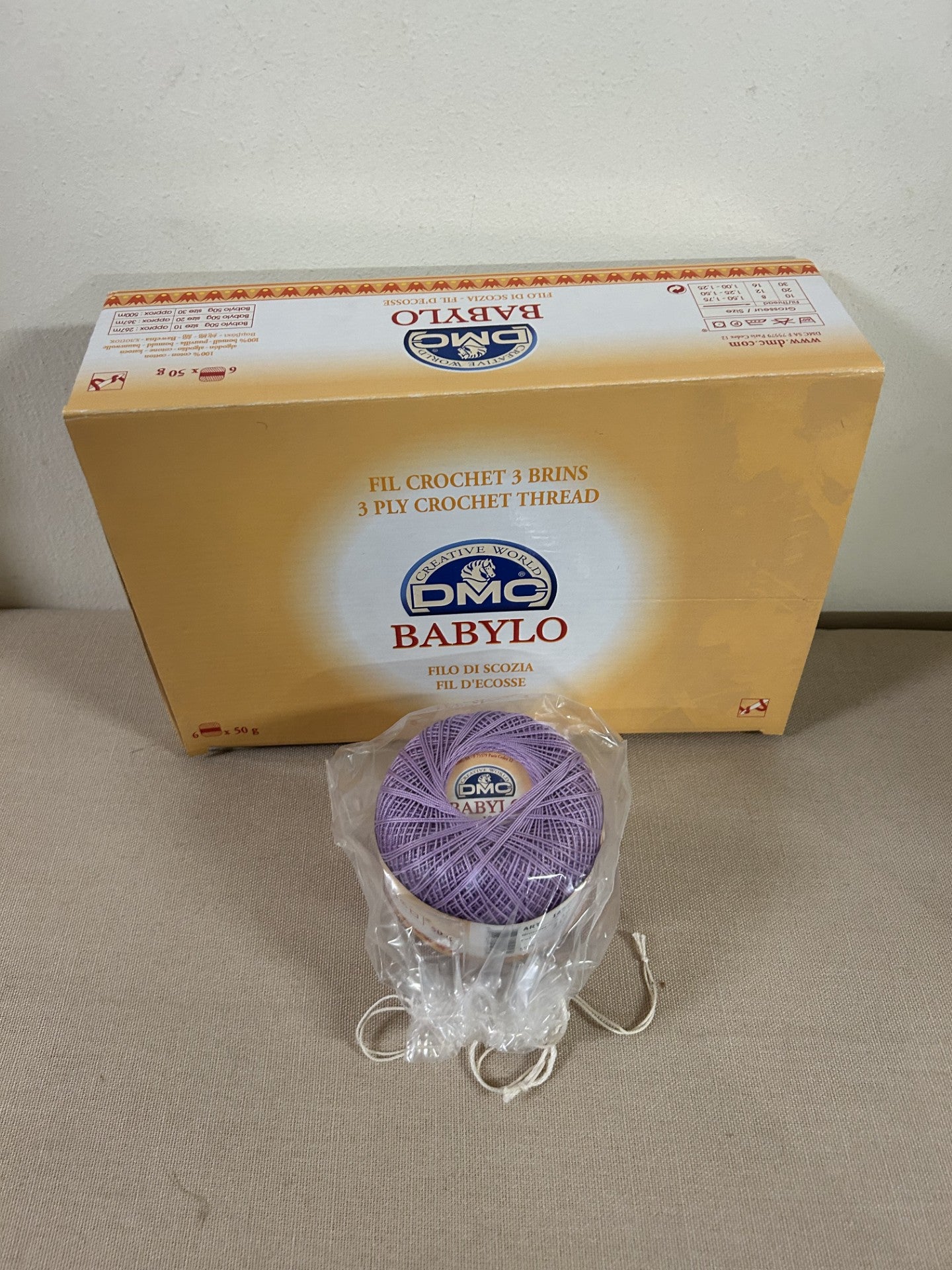 gomitolo COTONE FILO DI SCOZIA 50 g. da uncinetto BABYLO N.10 lilla col.55, DMC