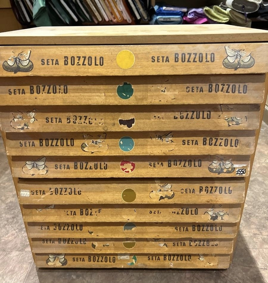 mobile vintage in legno con 10 cassetti, SETA BOZZOLO REALE
