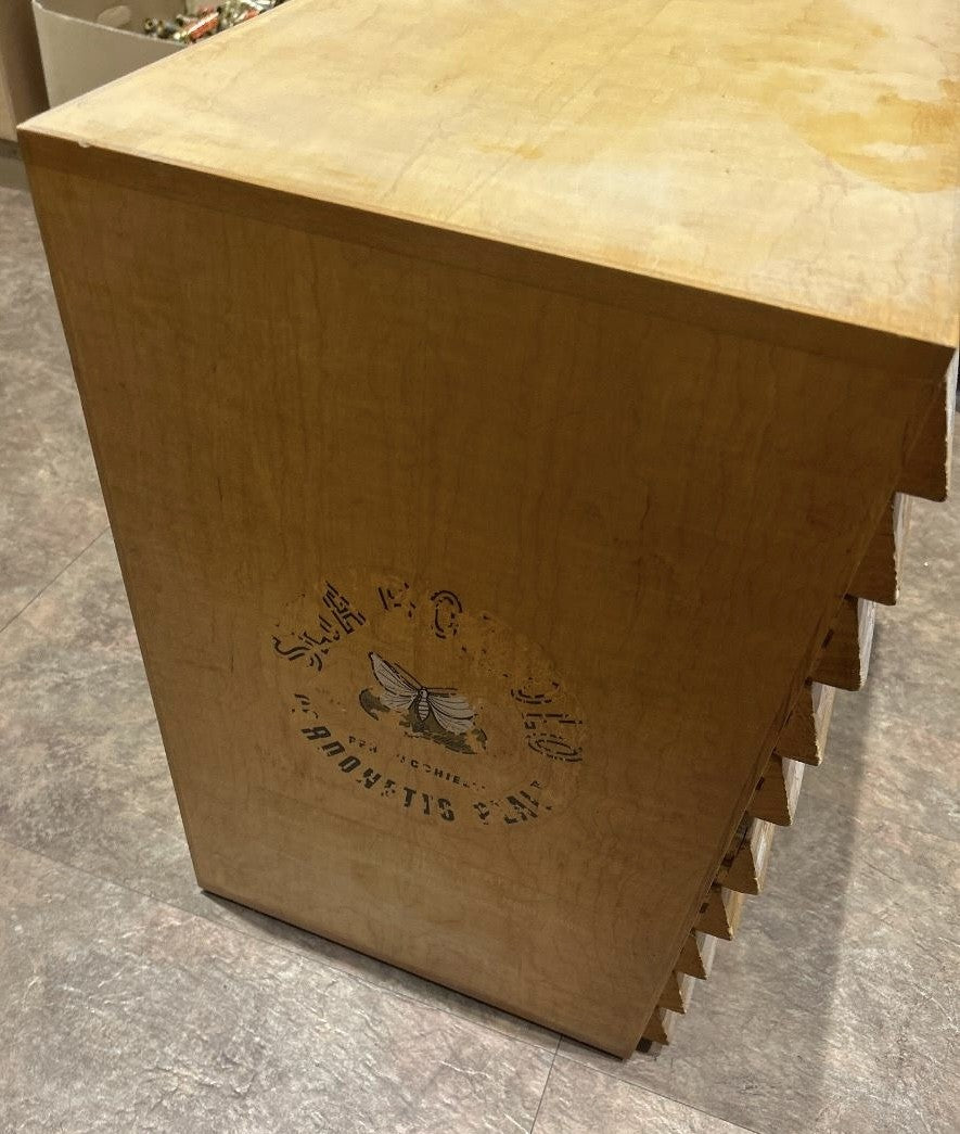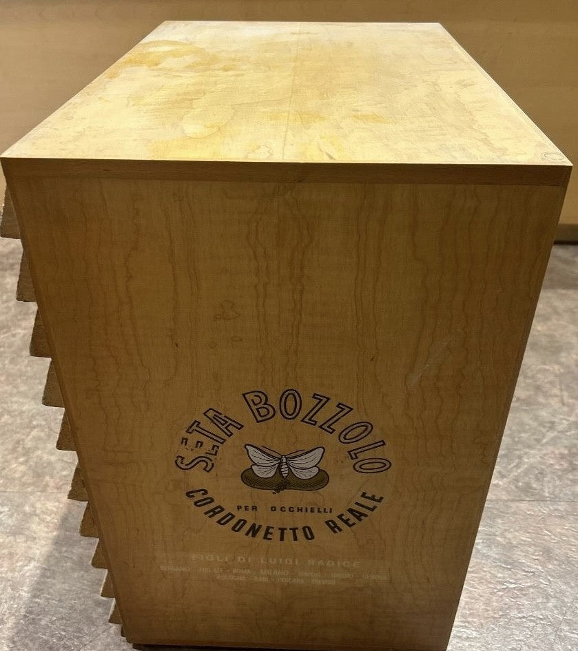 per chiusura attività si propone in vendita mobile espositivo seta bozzolo reale (senza fili!) con nr. 10 cassetti in legno. misura mobile: Largh. 50 x Sporg. 35 x h. 55 cm. - pezzo da collezione - molto raro