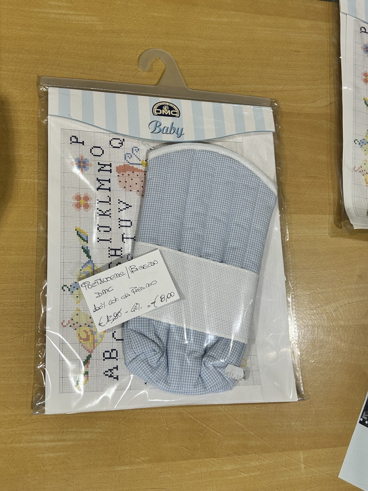 PORTA CREME / BIBERON 100% COL. CELESTE cotone DA RICAMO, DMC Baby